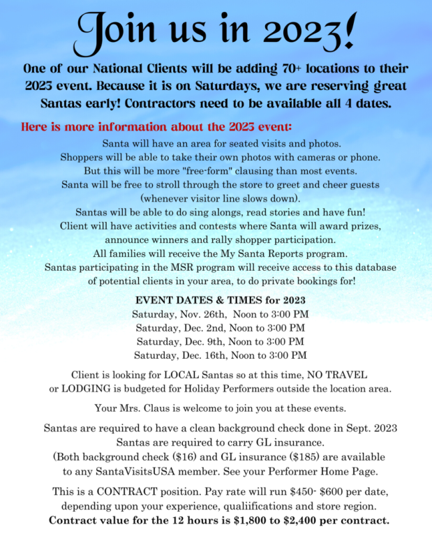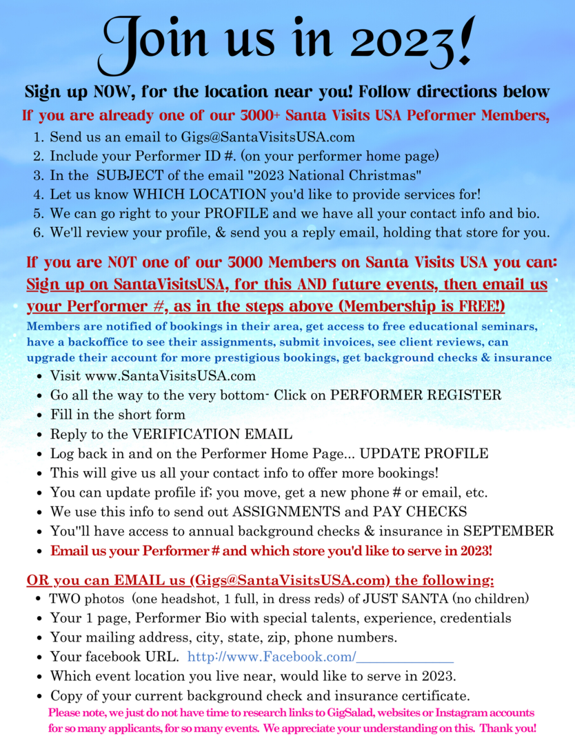 Performer Register New Account: www.SantaVisitsUSA.com