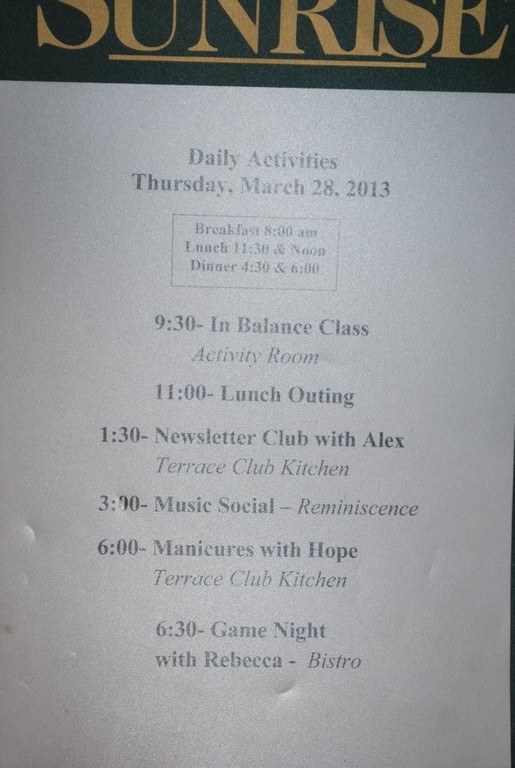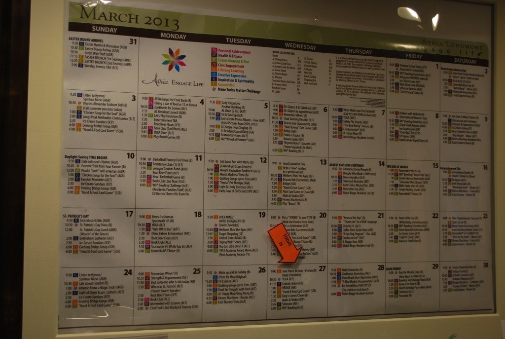 Lots of activity of residents. Numerous "Bistro" & activity areas.