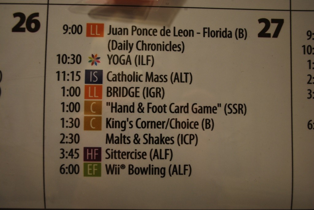 Nice people (residents) but not quite very active... Cards & puzzles...