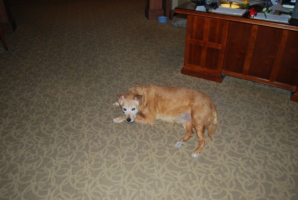 Sasha, resident dog (Lab) on site. Greets everyone at Concierge desk.